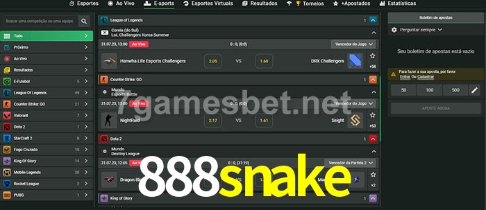 A aposta 888snake oferece aos jogadores a experiência mais conveniente de apostas em eSports!